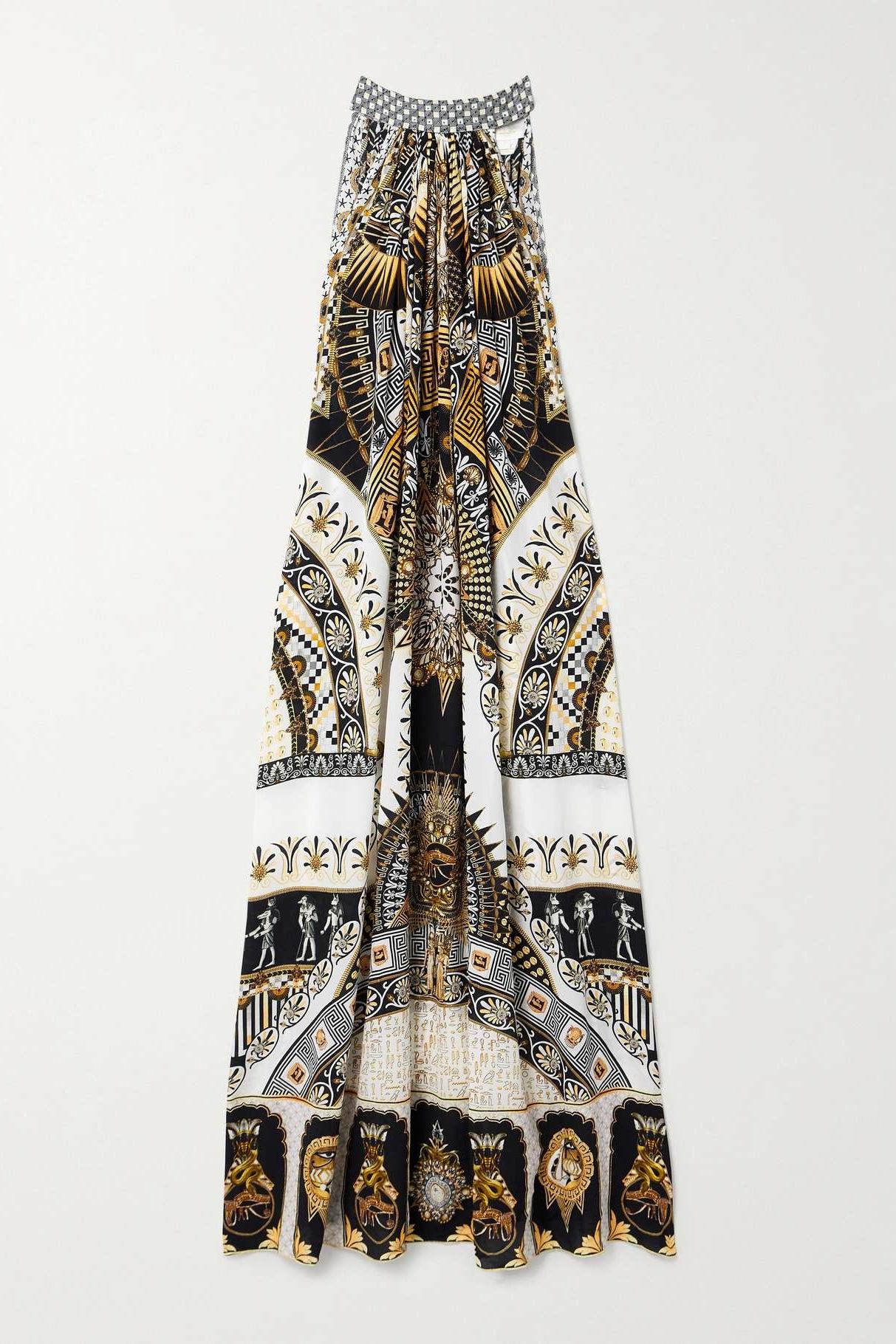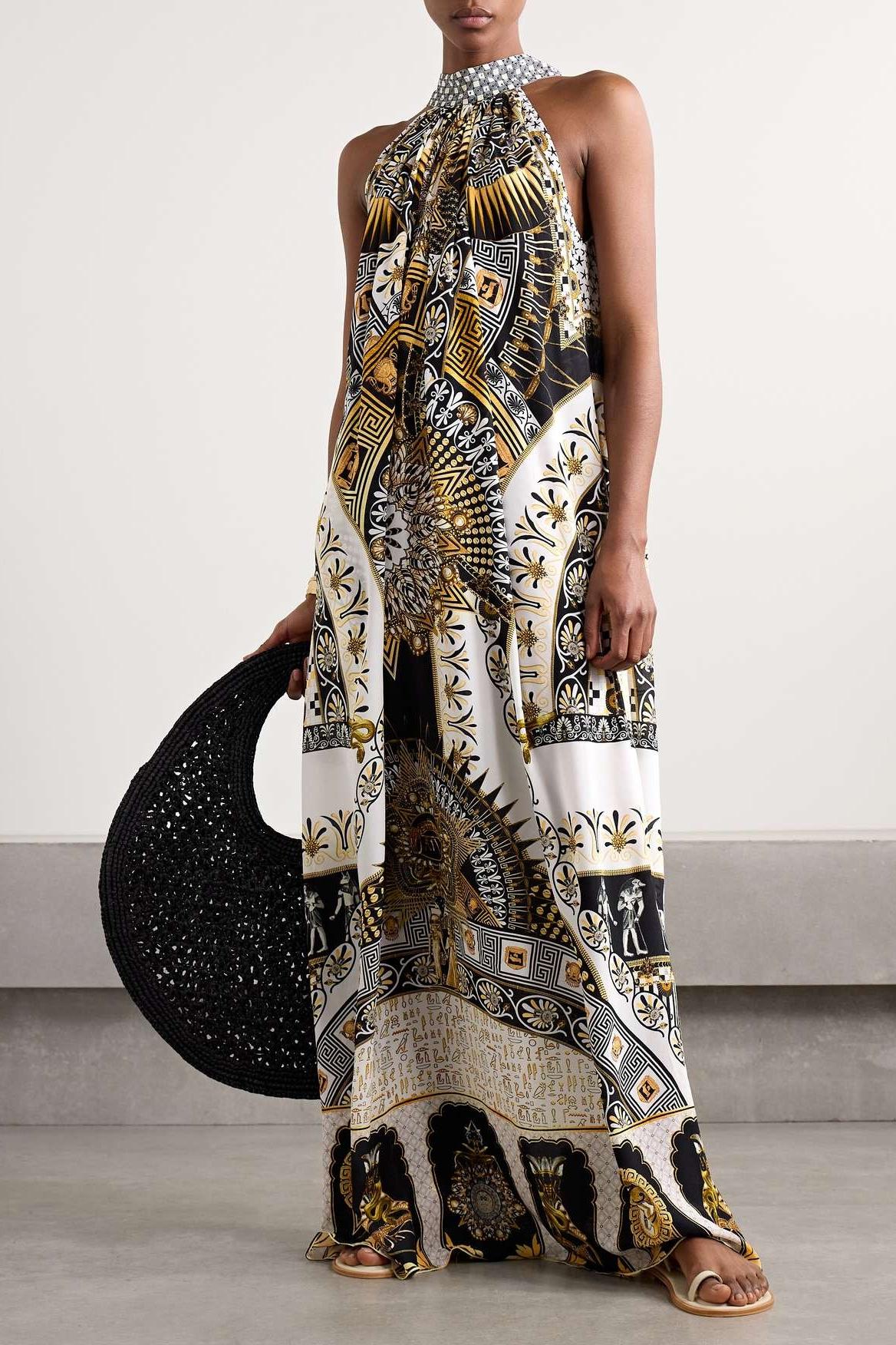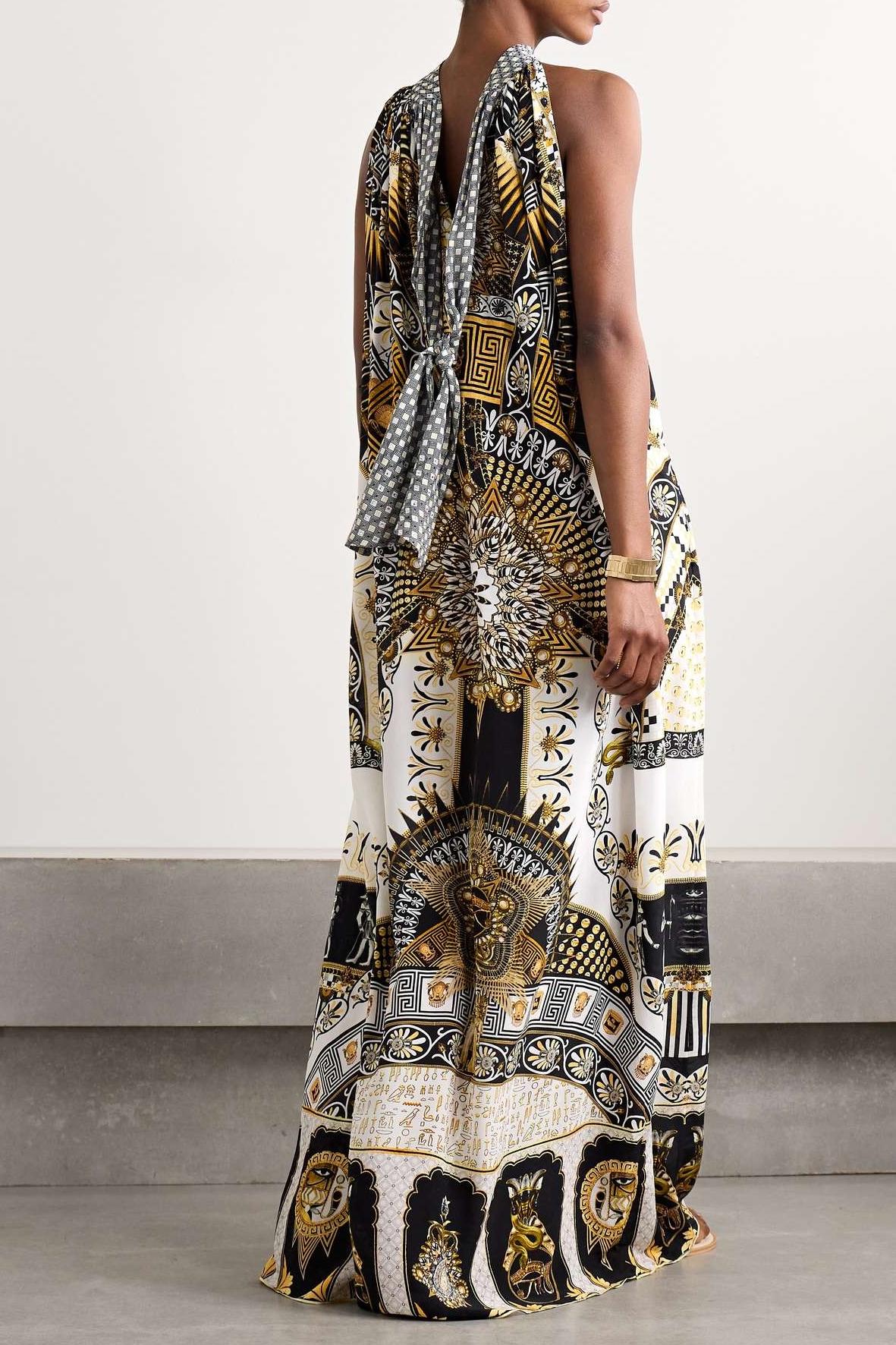 - Sleeveless, black, paisley print, lace-up, midi dress