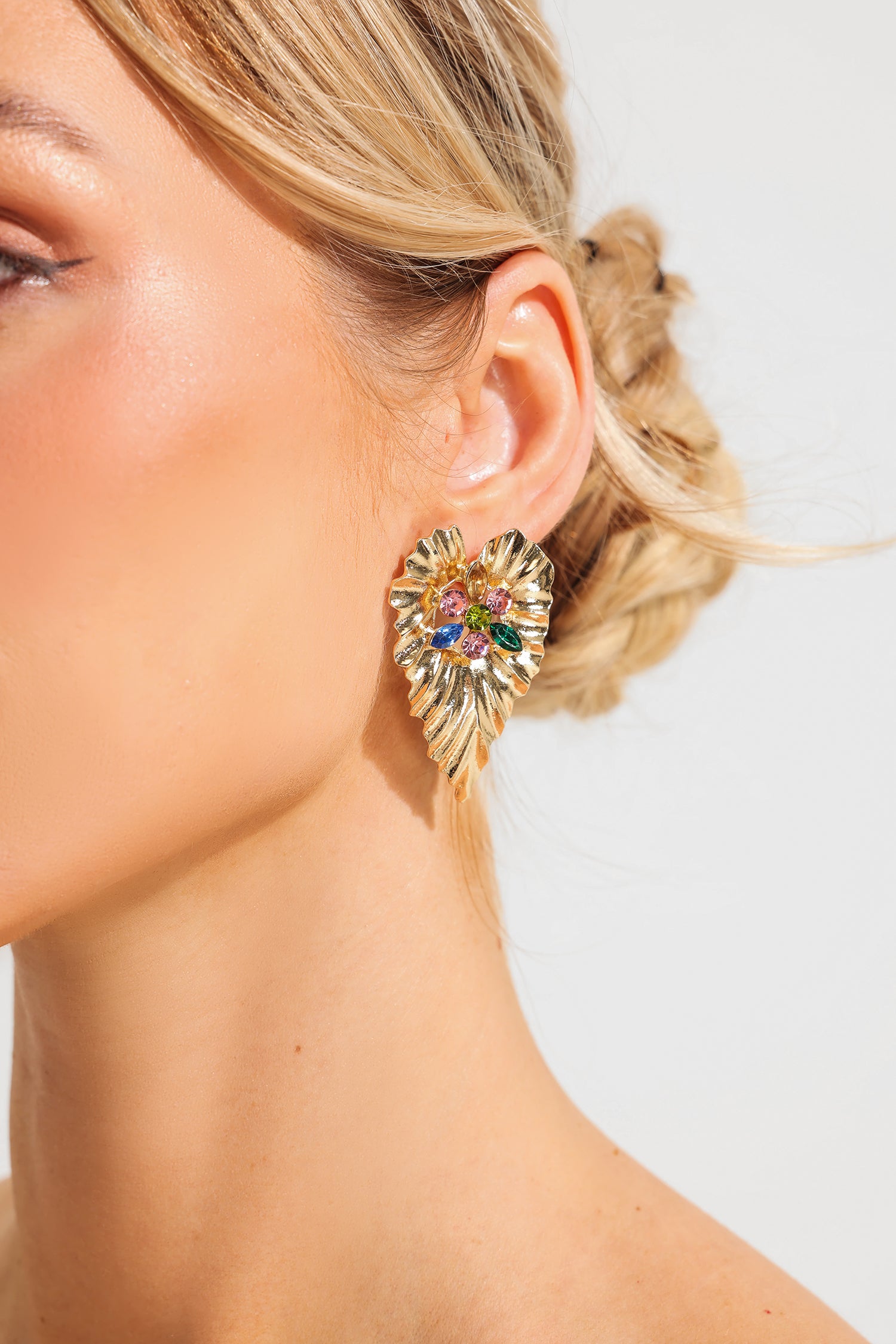 Rhinestone Metal Leaves Shape Earrings