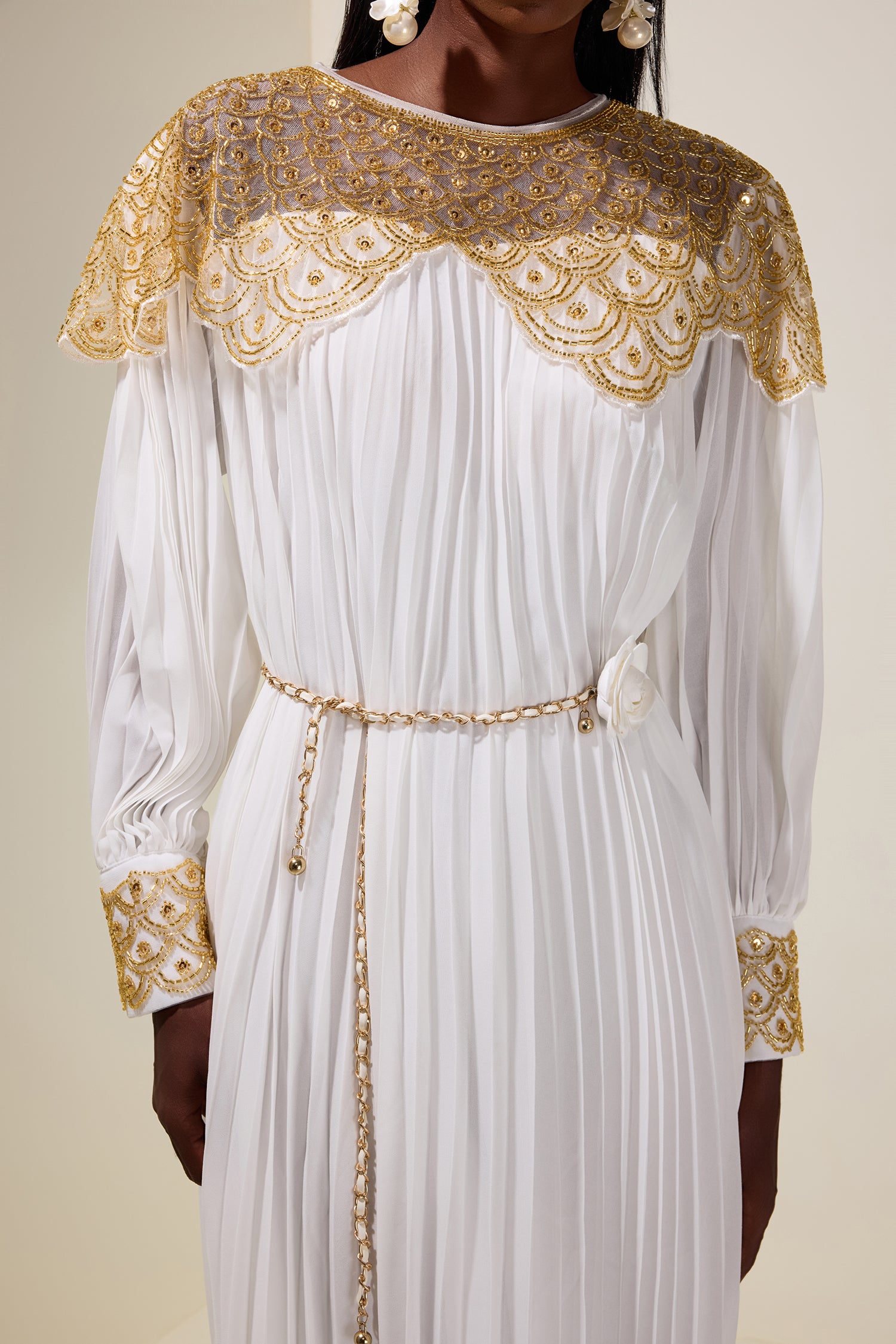 Sequin Splicing Chiffon Round Neck Maxi Dress With Belt