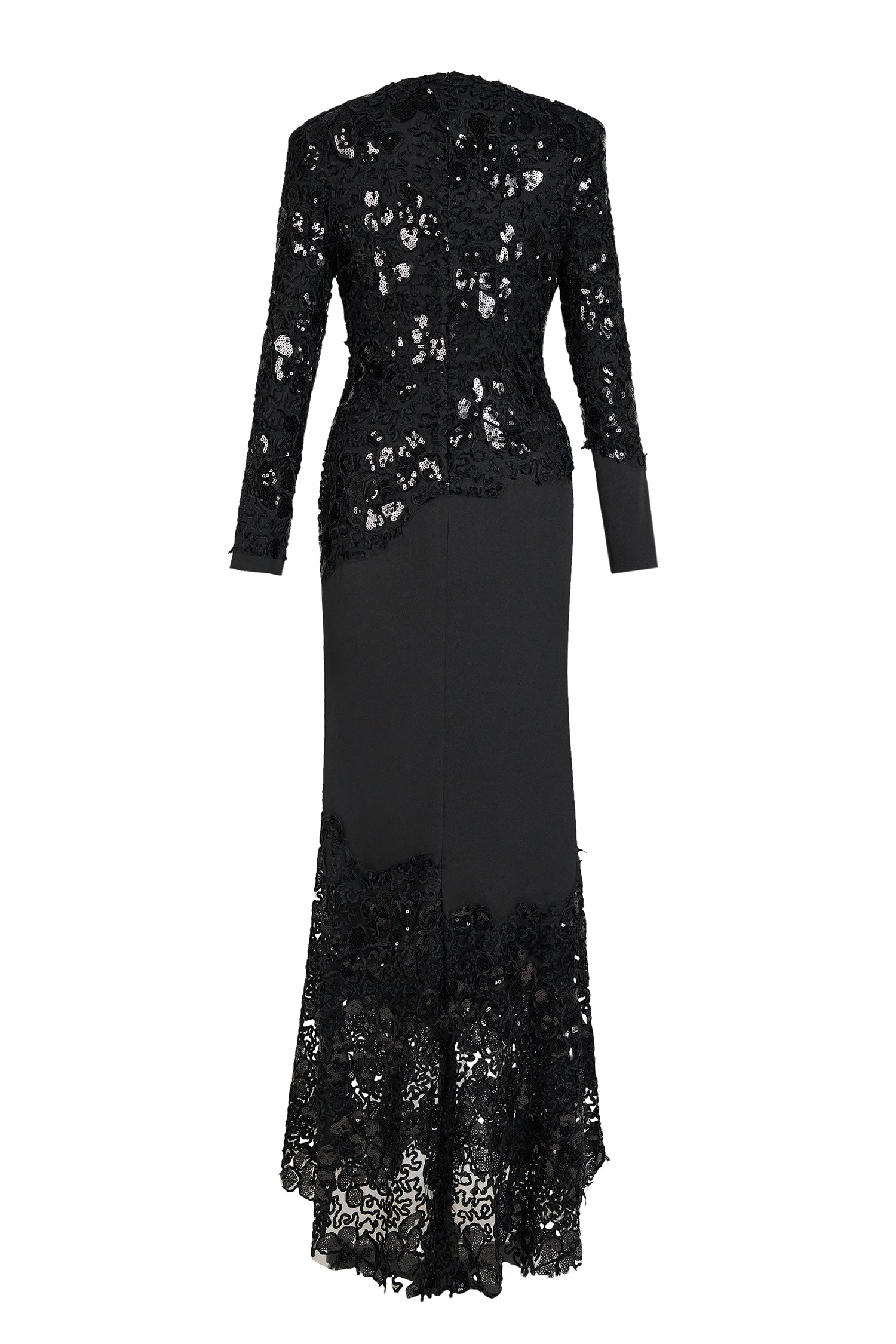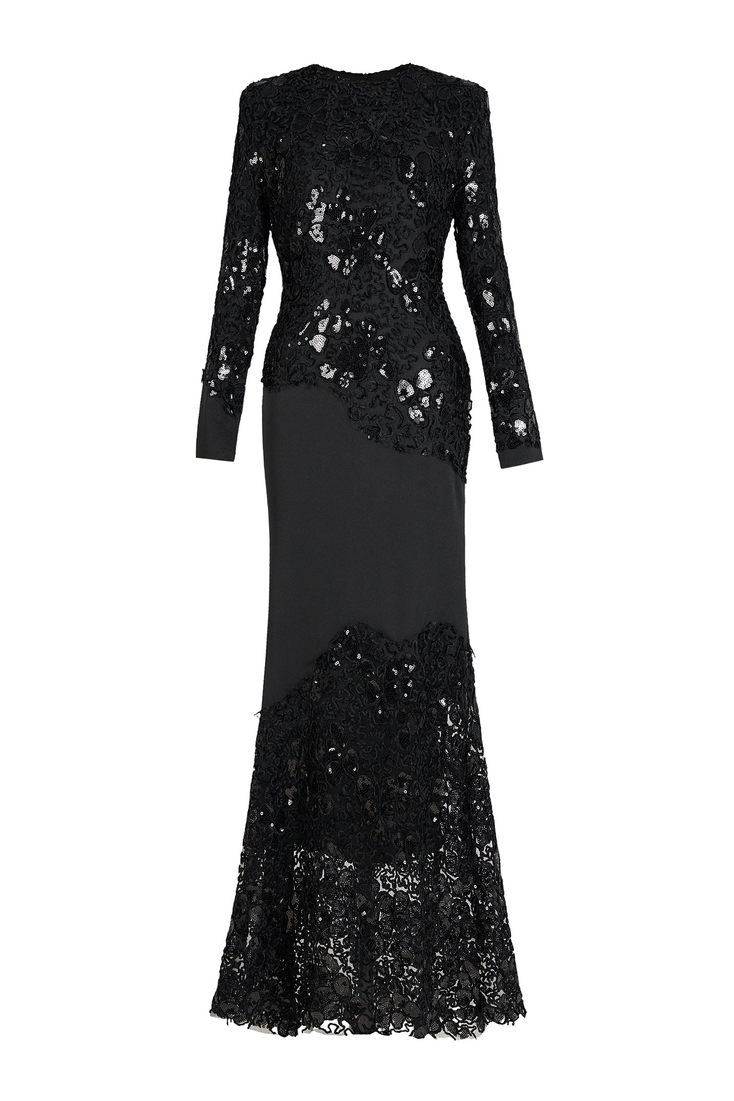 Sequin Splicing Embroidery Long Sleeve Maxi Dress