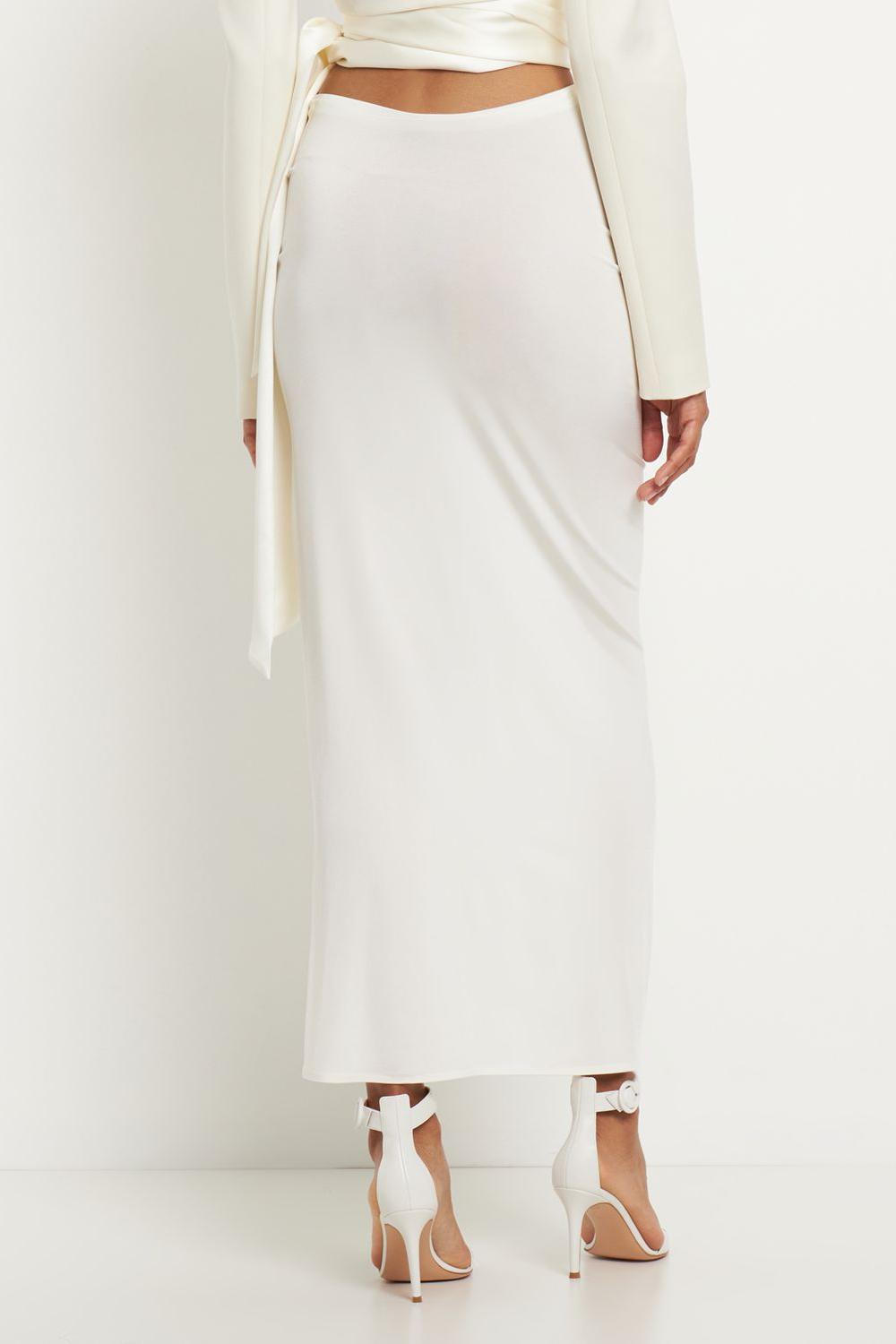 Lace Up Top & 3D Flower High Waist Midi Skirt Set White